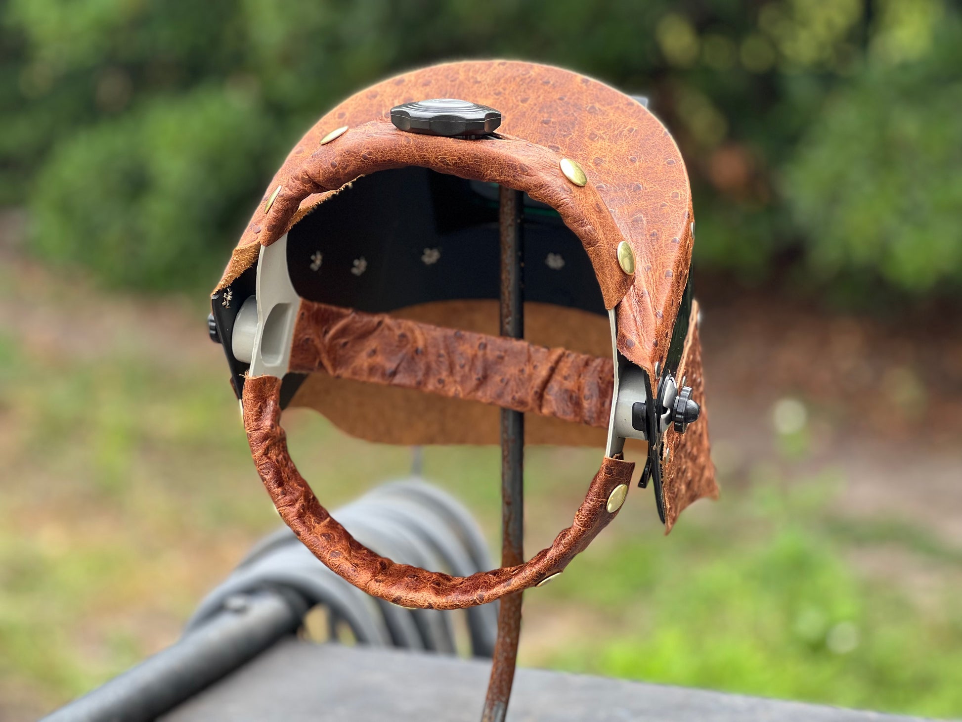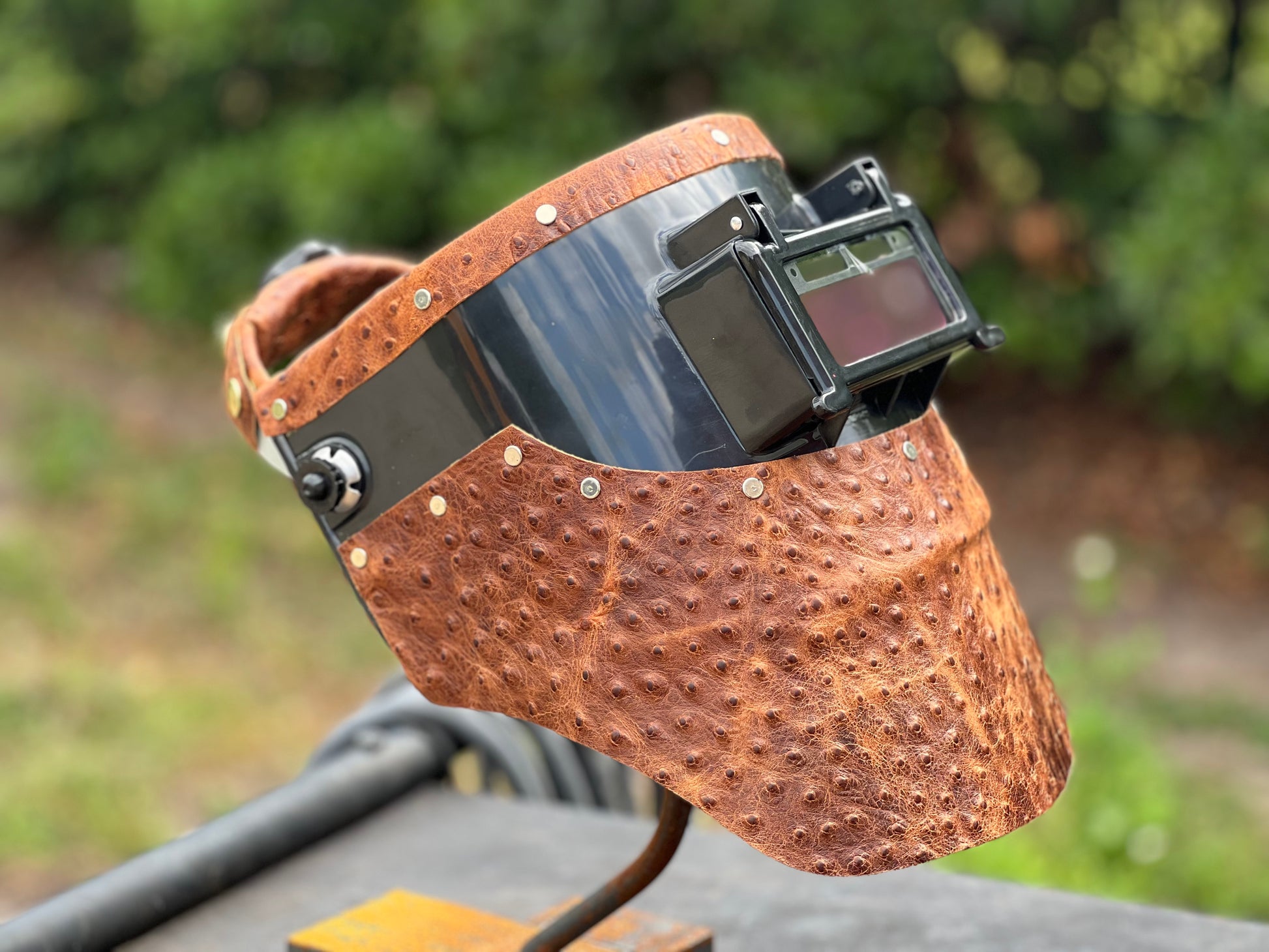 Looking for something exotic to impress the fire watch? Look no further then our embossed ostrich double chopped tiger hood with matching our 3 piece sweatband!!