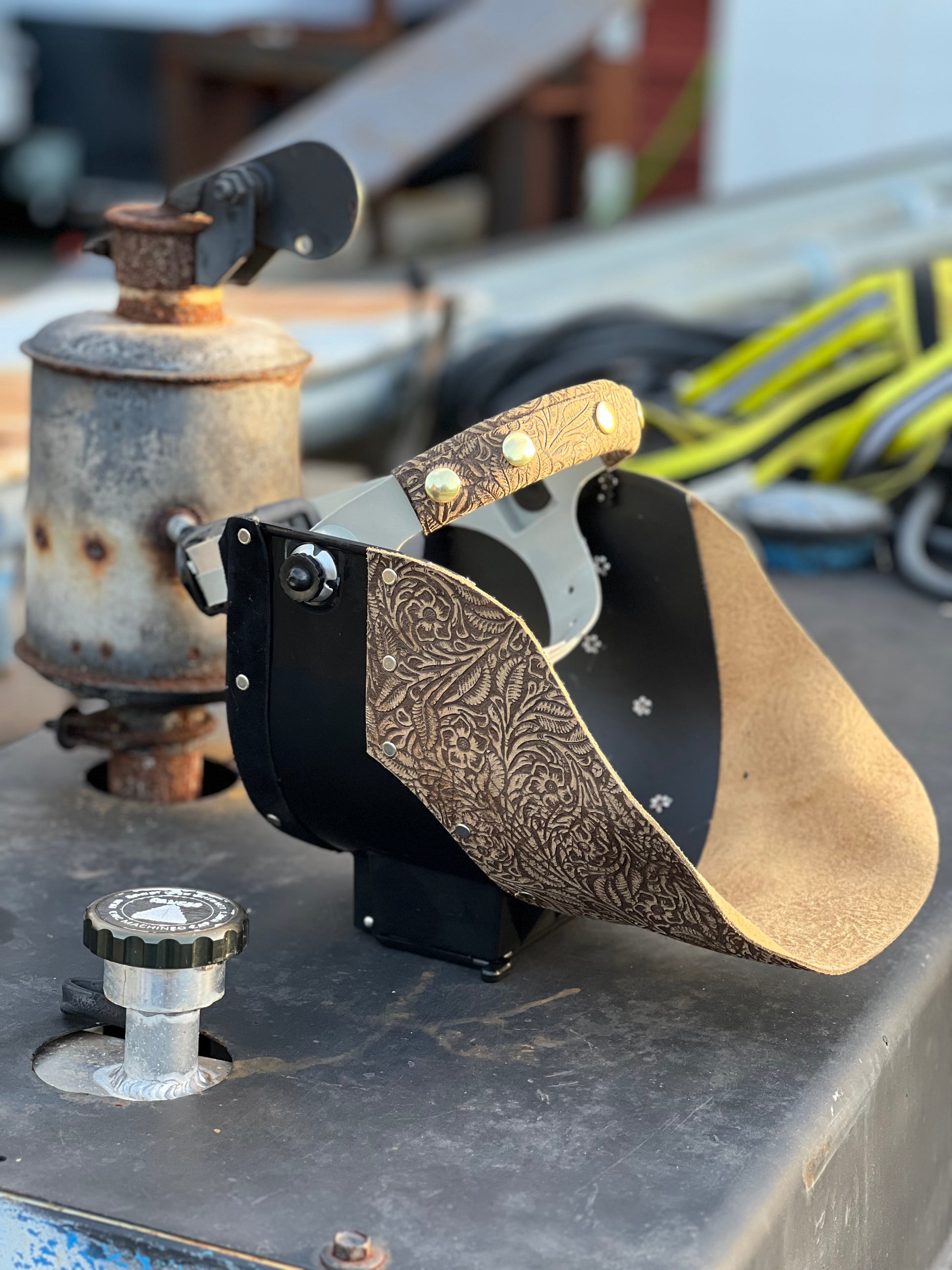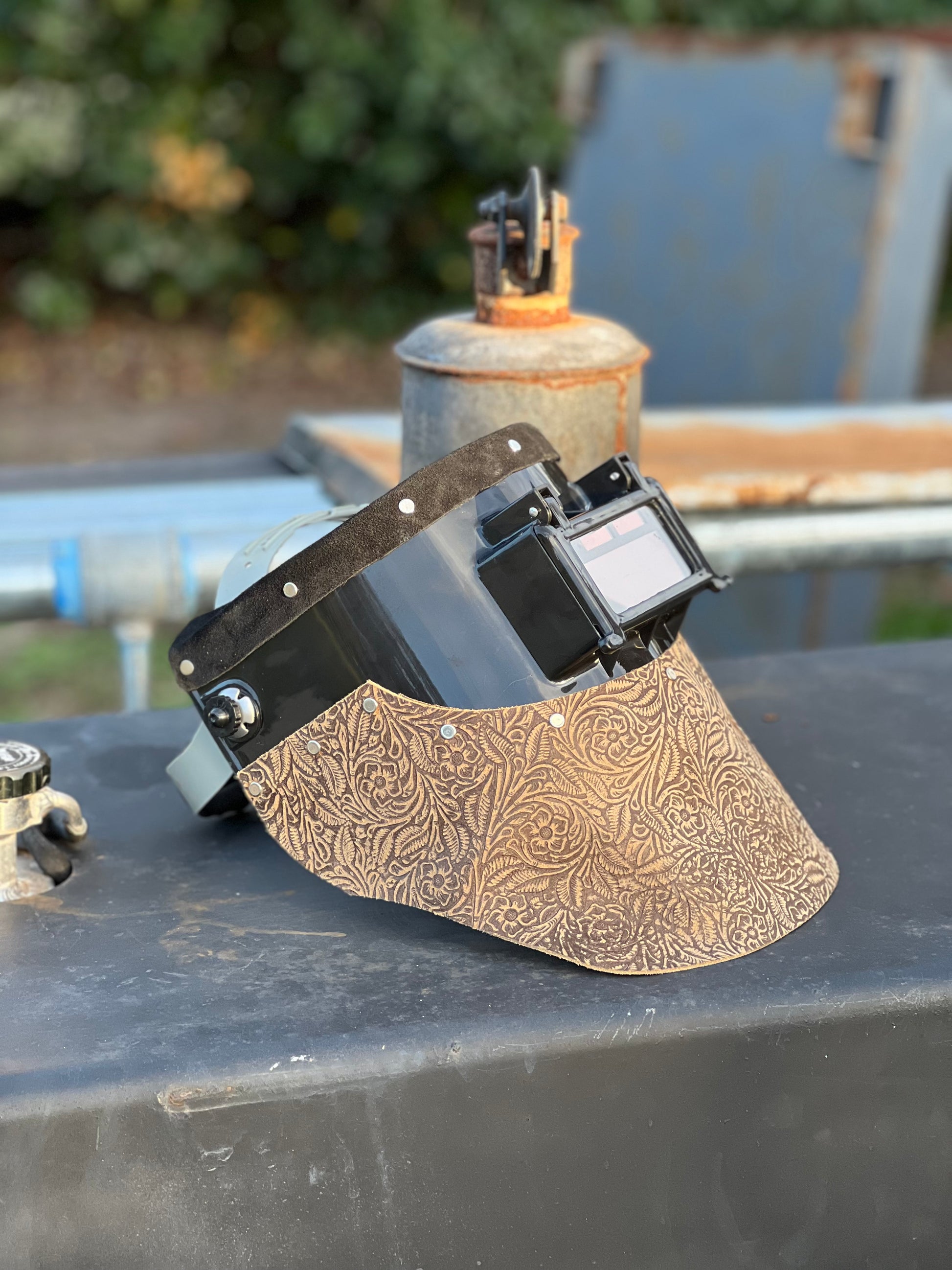 Tan floral welding hood